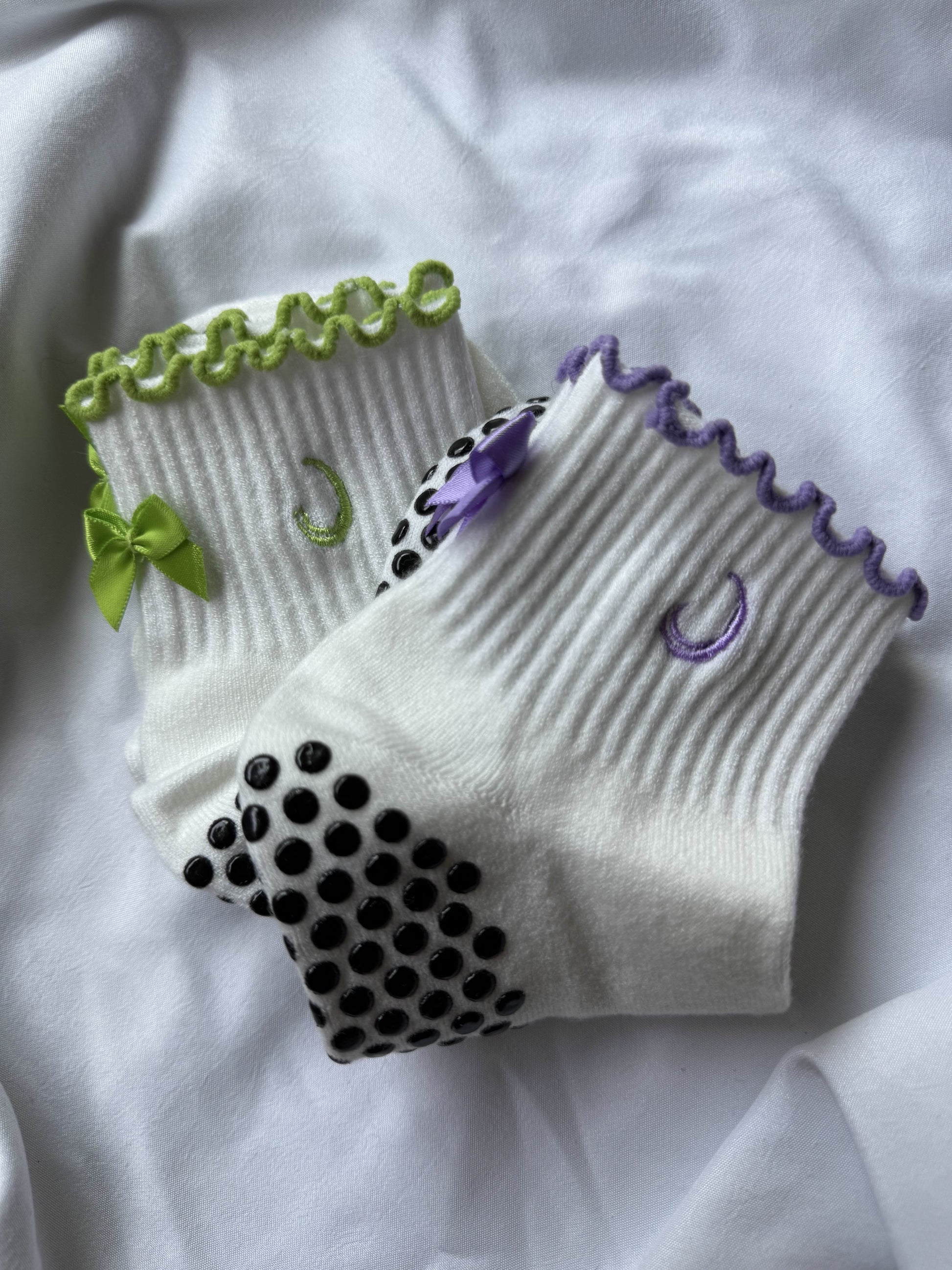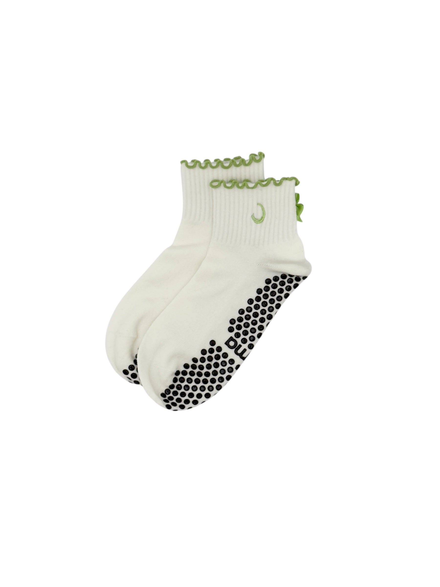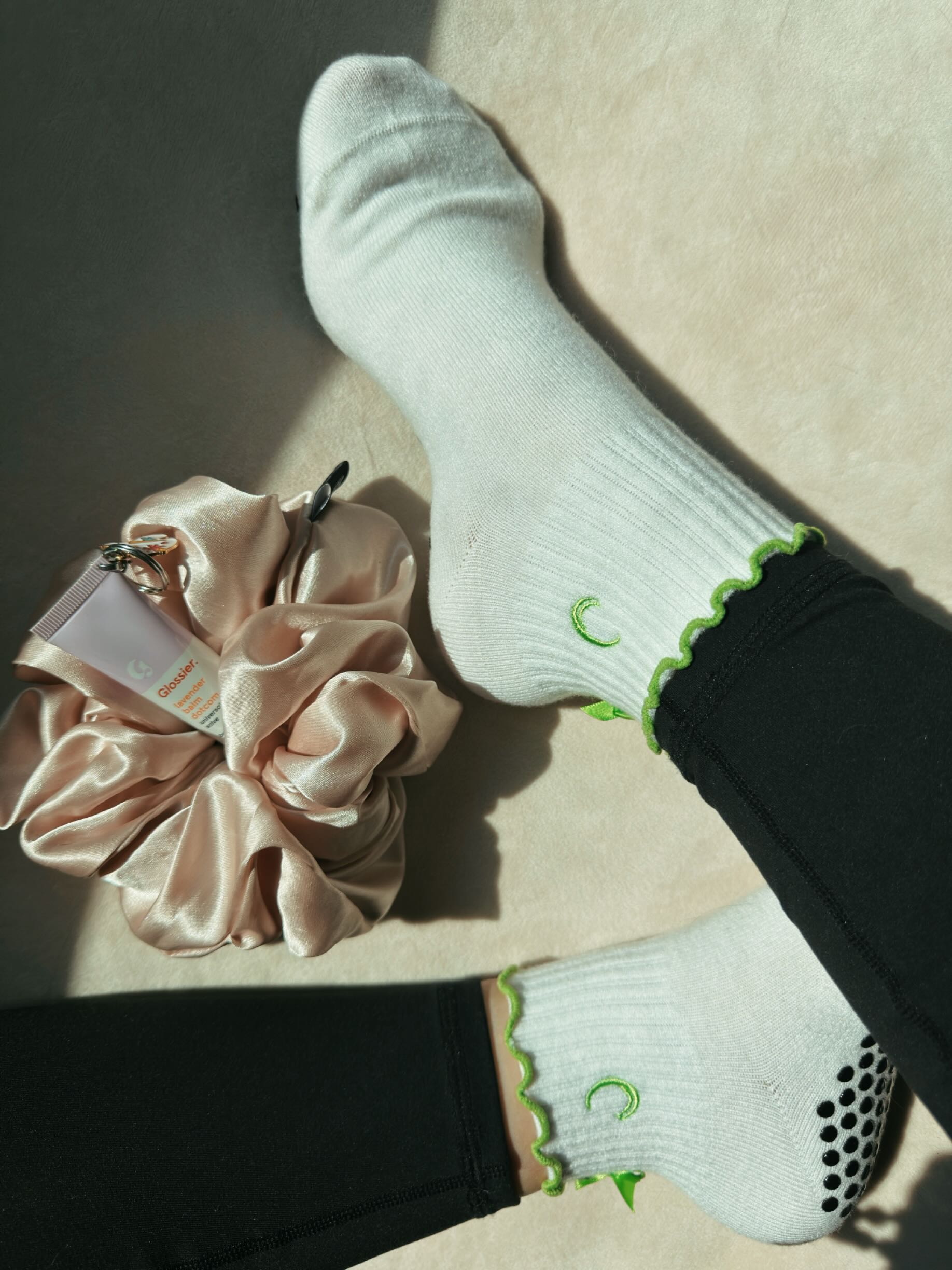 Inspired by one of my favorite bubble tea flavors, Matcha is a grounded green that brings a calm, earthy energy to your practice. It’s soft, smooth, and made for moving with intention — like a deep breath in sock form.